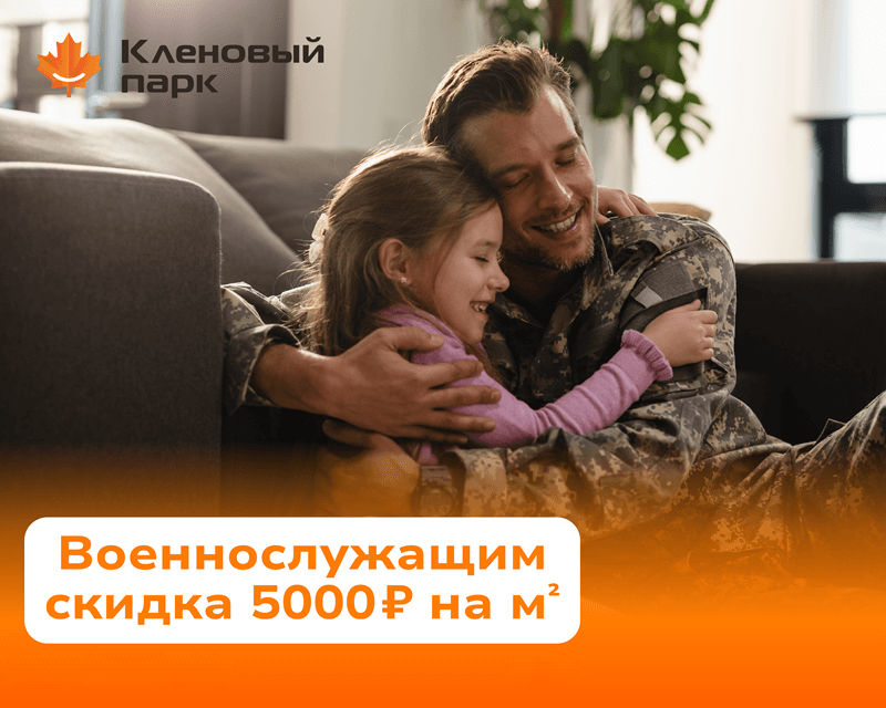 В ЖК «Кленовый парк» скидка 5 000 рублей с м² для всех военнослужащих! Приятный бонус для тех, кто служит на благо нашей страны.